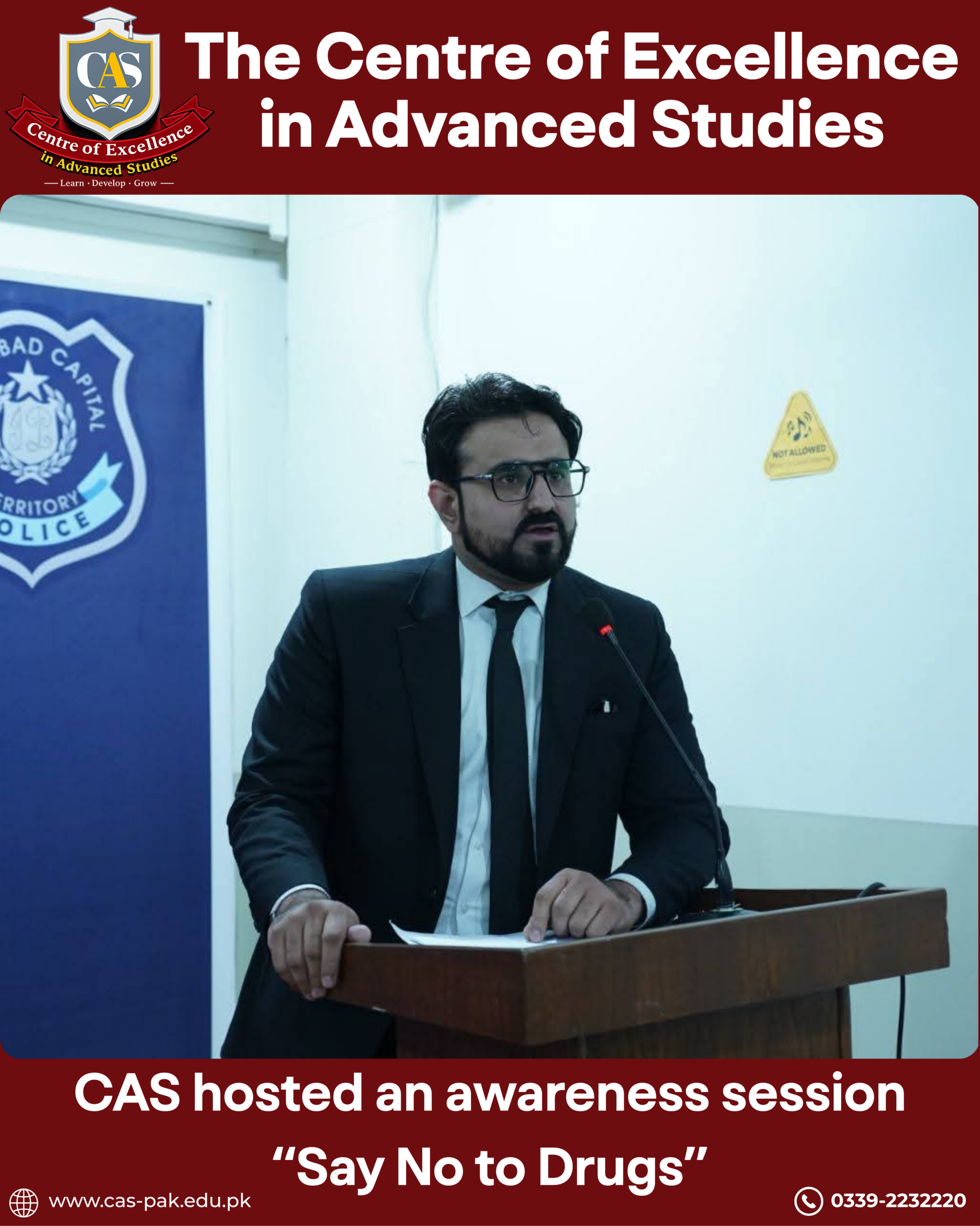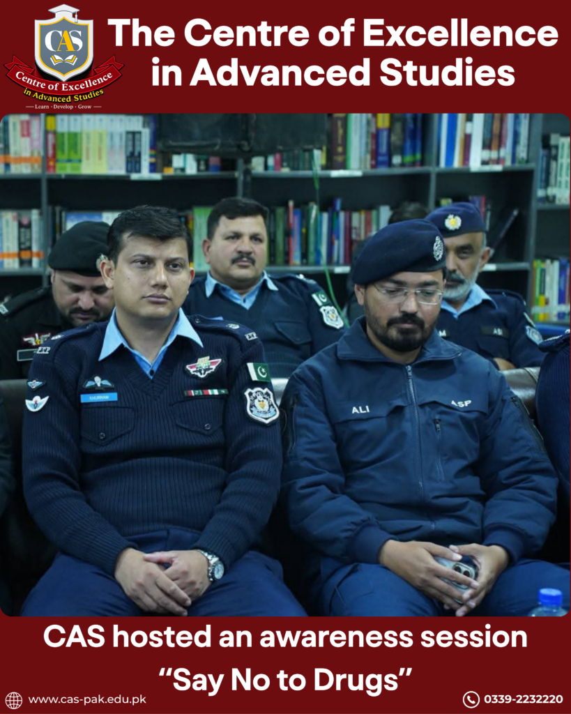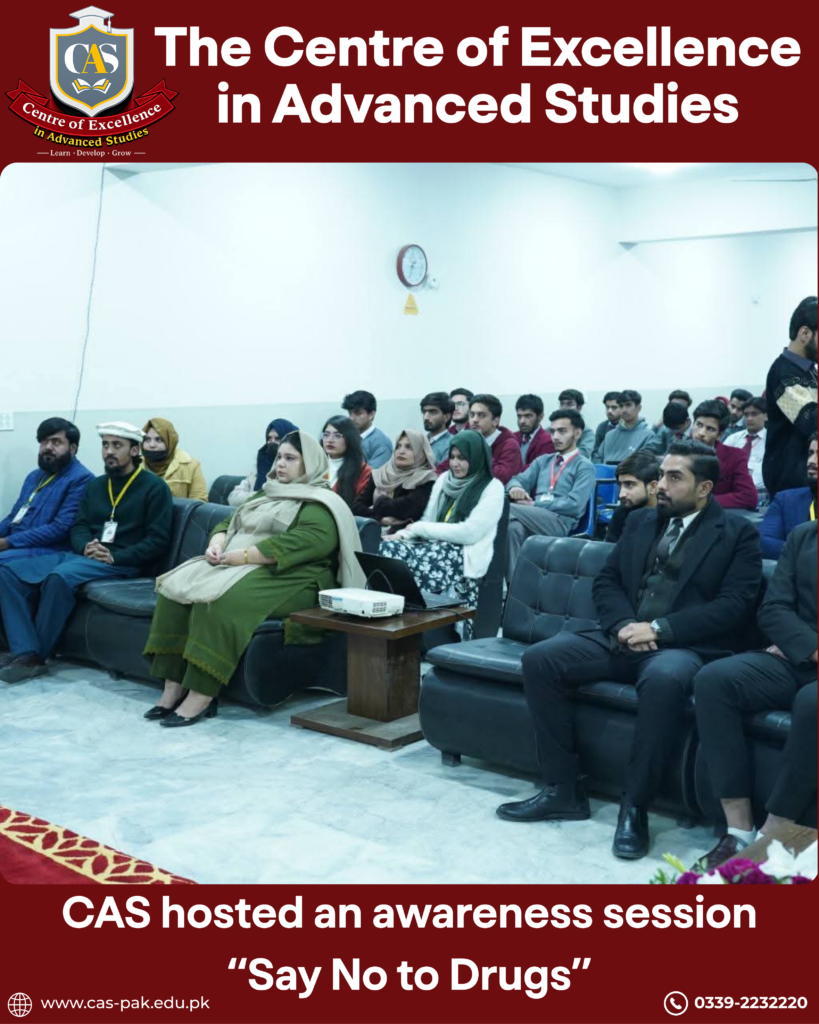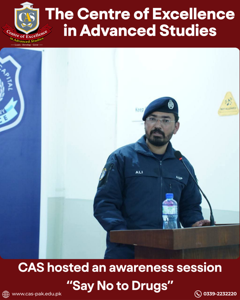 The Centre of Excellence (CAS) hosted an impactful awareness session for students of all programs, in collaboration with the Anti-Narcotics Campaign by Islamabad Police.