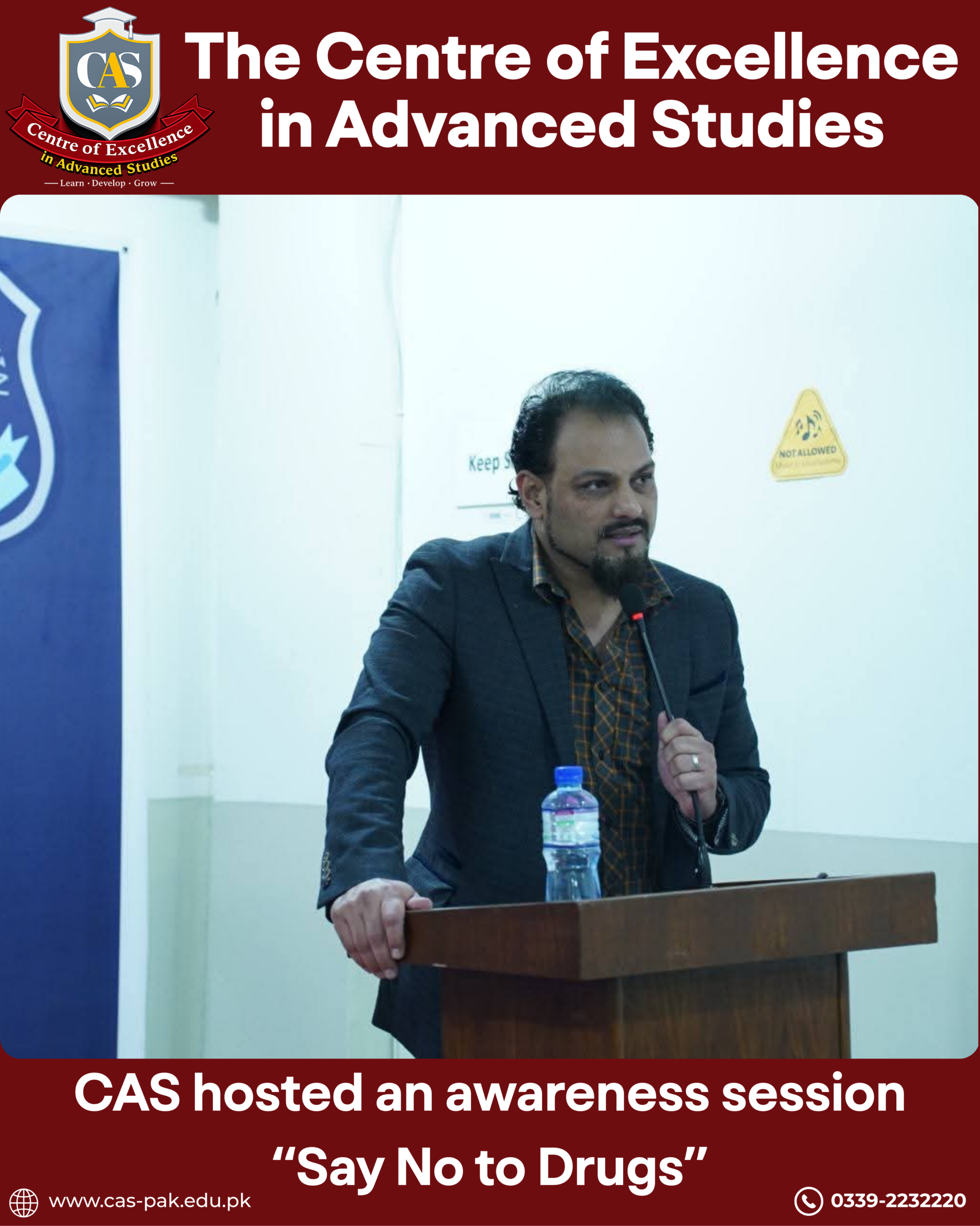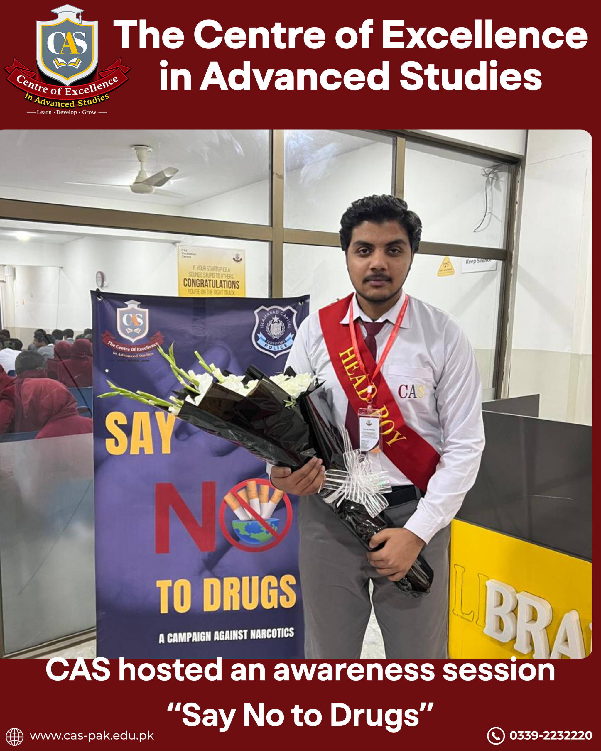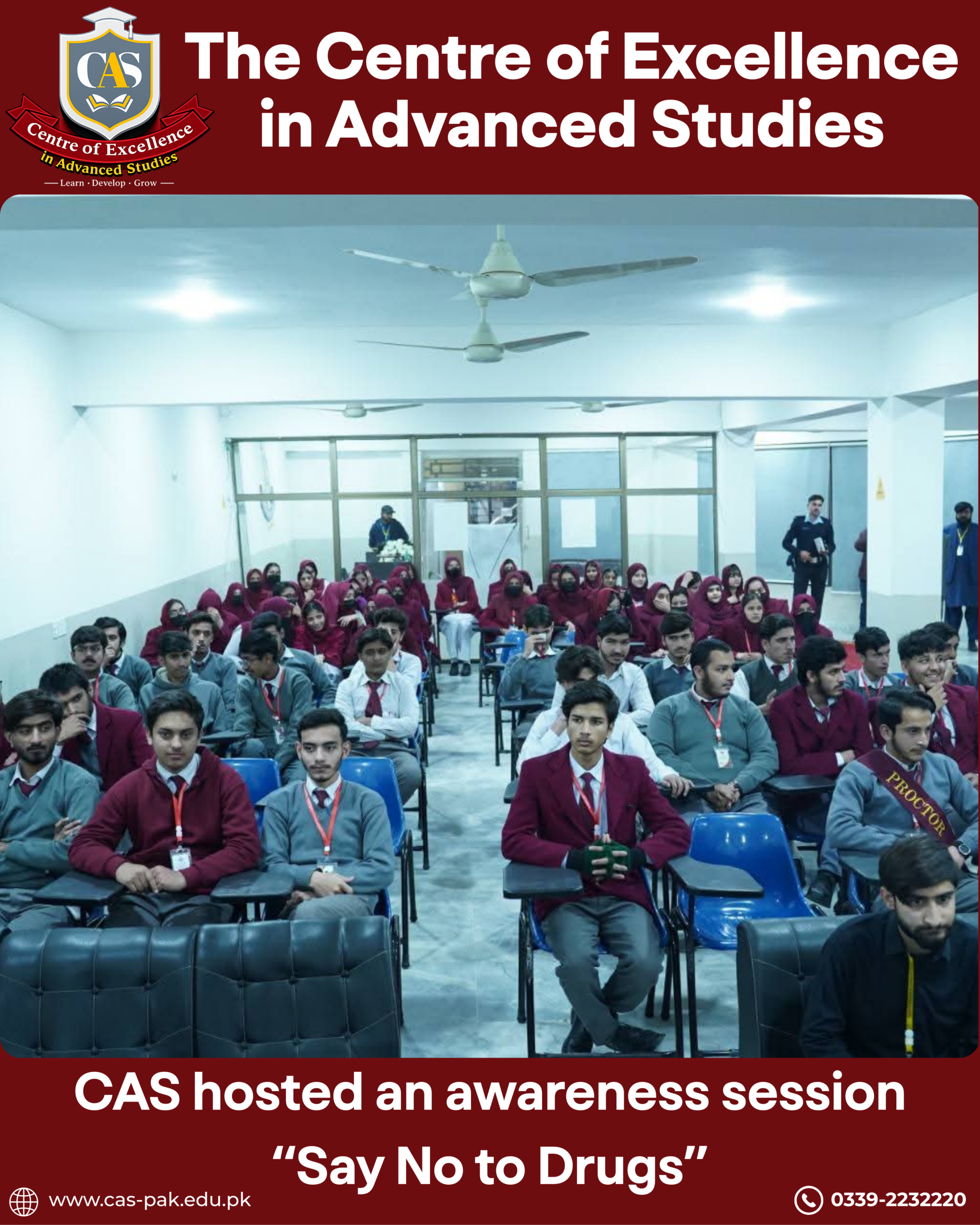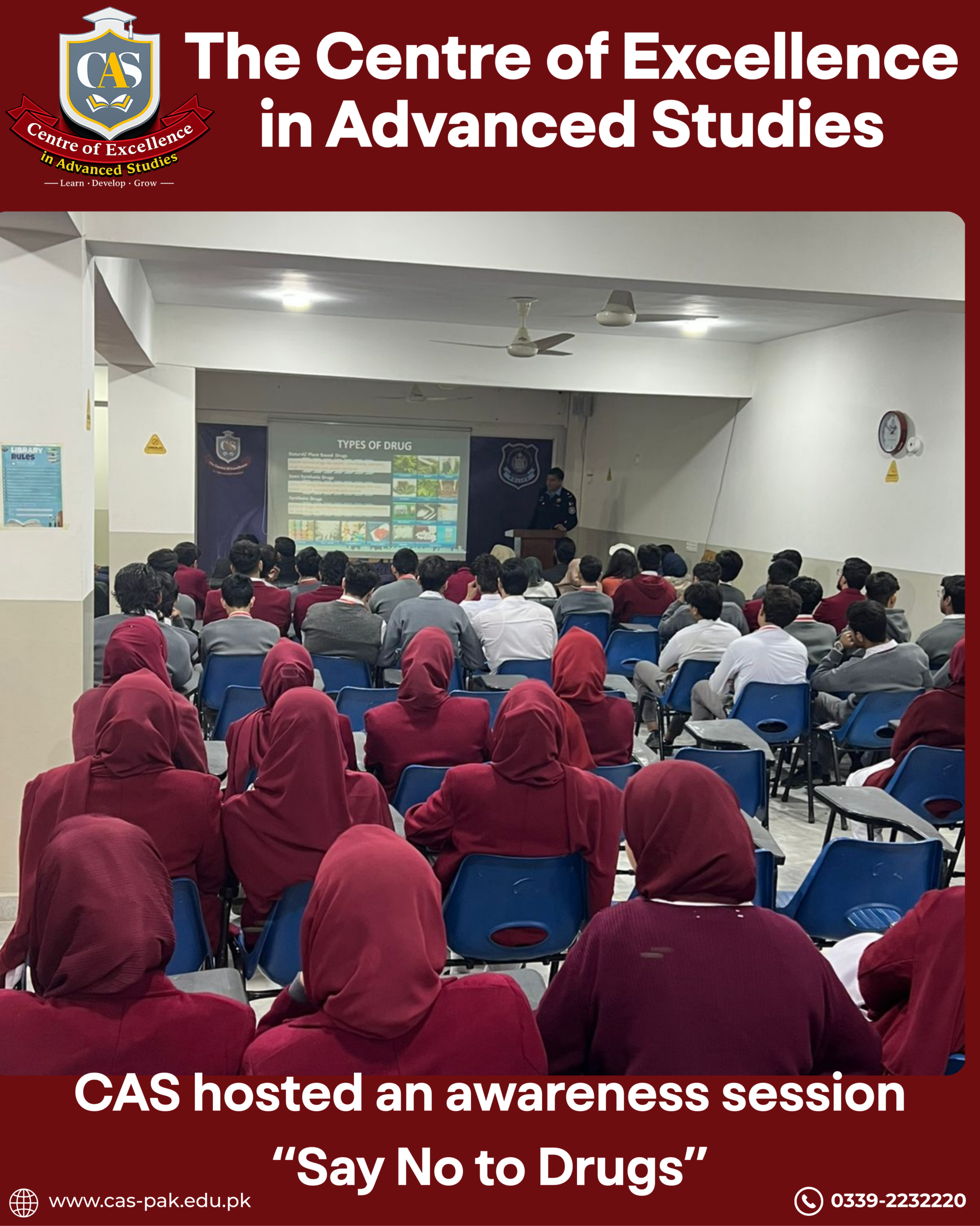 The Centre of Excellence (CAS) hosted an impactful awareness session for students of all programs, in collaboration with the Anti-Narcotics Campaign by Islamabad Police.